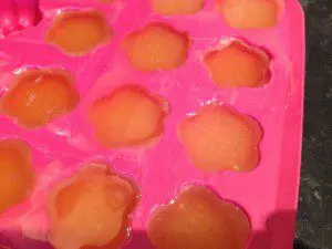 3. Once melted remove from the heat. Mix together with salt and essential oil and spoon into a silicone ice cube.