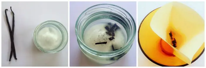 - Split the vanilla pod lengthways and scrape the seeds into a coconut oil jar. Chop the rest of the pod into small pieces and also place them into the jar.