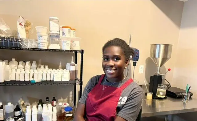 “I like making leave-in conditioners. I get to make it my own. So, I come to the school, and you give me the basis of how to make a leave-in conditioner. But then I come back and then I make my own ingredients that nobody knows so I make it my own and people love it. People use it, they love it. And that’s the beauty of it.”