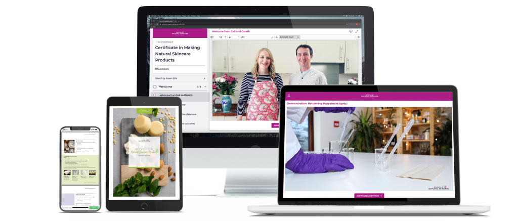 From all of the in-person workshops, and all of the studying we had done and experience we had gleaned, we developed our workshops into online courses that really brought what our students were learning to life. We had experience teaching our practical workshops, and we know what kind of questions came up and what kind of challenges students might face, so we worked that into the online classes, which went on to become what’s now our Certificate in Making Natural Skincare Products. We knew our students wanted a great course for beginners that was very practical and came with loads of recipes to help them make their own products.