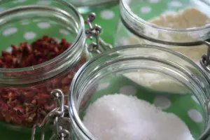 Make your cup of herbal tea and when your bath is ready, take your cup of tea, bath salts and body scrub into the bathroom. Add your bath salts to the bath and step in. Take a spoon with you so that you can take the body scrub out of your dish with something clean and dry. Leave the anointing oil for later! So now then, what products to make how to make them?